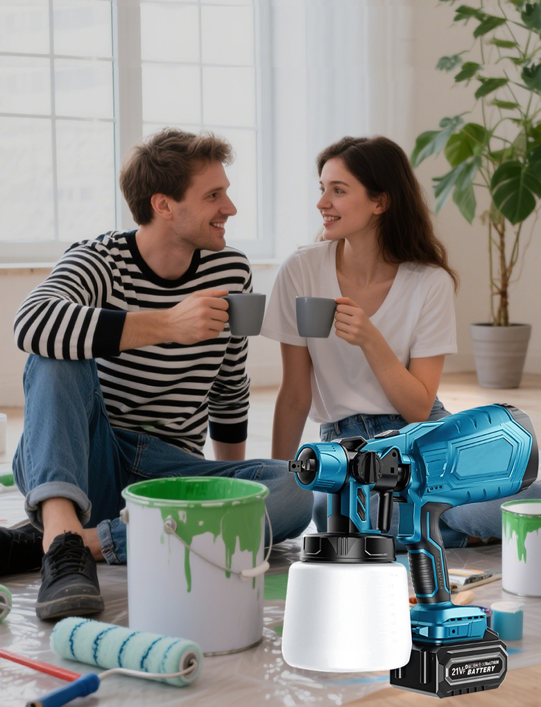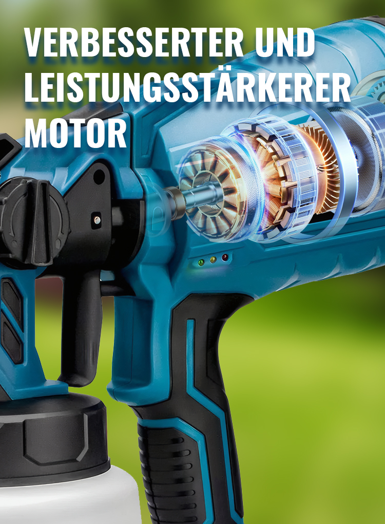 Diese handgeführte kabellose Farbspritzpistole verfügt über einen Regler für die Sprühbreite, der eine präzise Kontrolle des Sprühbereichs ermöglicht und die Effizienz beim Farbauftrag deutlich verbessert. Durch die Anpassung des Farbflusses an die jeweiligen Projektanforderungen erzielen Sie bessere Ergebnisse und reduzieren gleichzeitig Farbverschwendung. Dadurch eignet sich das Gerät für eine Vielzahl von Sprüharbeiten.