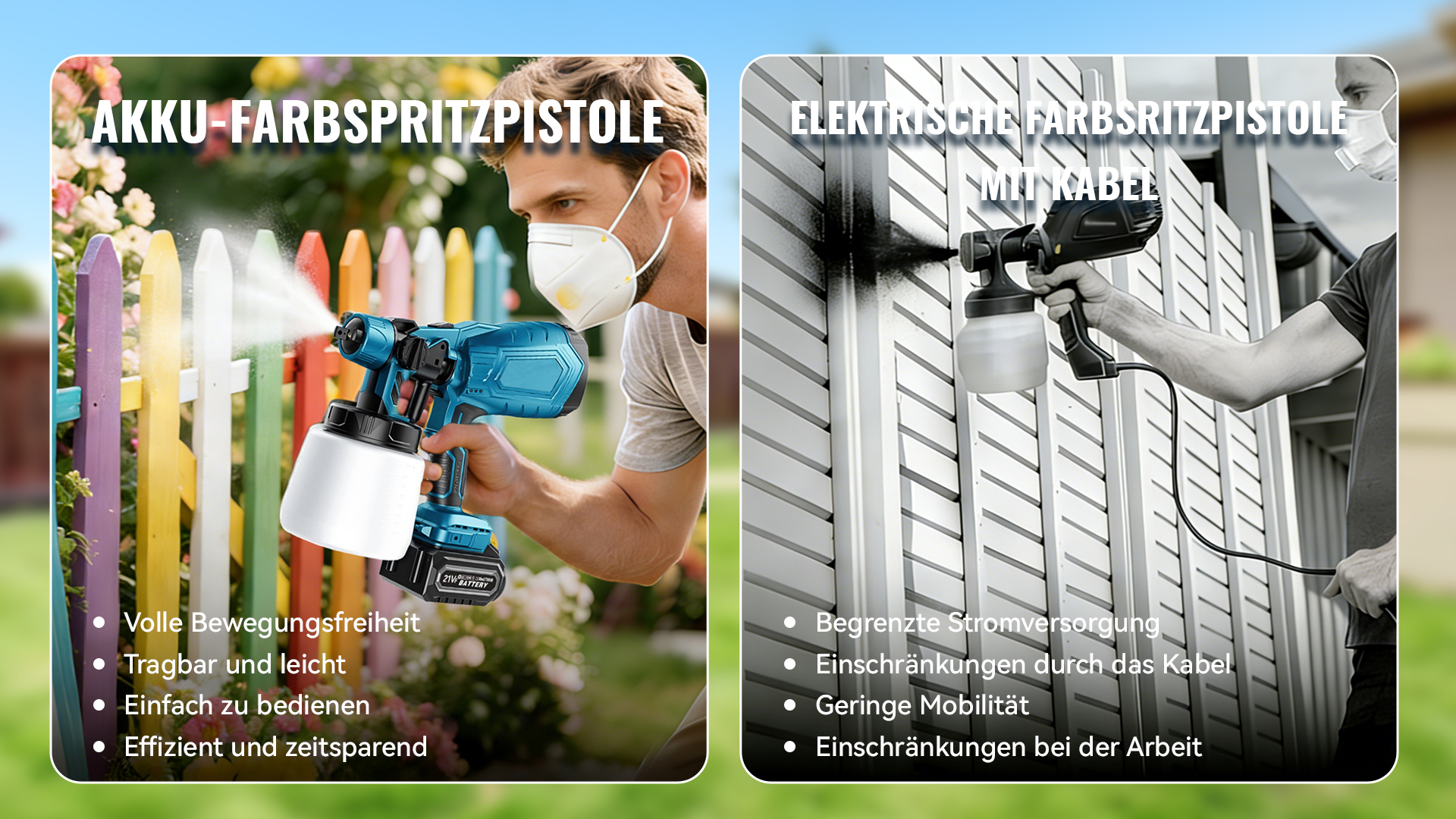 Genießen Sie die Freiheit, überall zu streichen – mit dieser kabellosen Farbspritzpistole. Keine Kabel, keine Einschränkungen. Die Airless-Technologie sorgt für eine gleichmäßige und glatte Farbverteilung und macht das Streichen besonders einfach. Entwickelt für flexible Einsätze, ist diese Farbspritzpistole das ideale Werkzeug für DIY-Projekte – sowohl im Innen- als auch im Außenbereich.